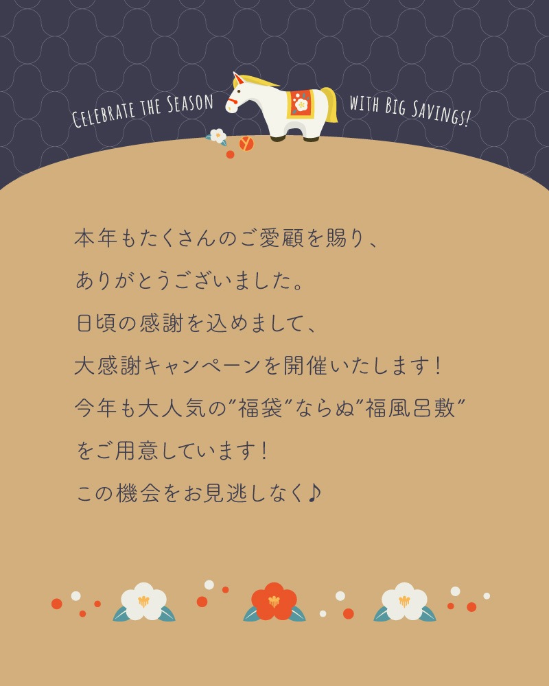この機会にぜひ、お得な福風呂敷をお楽しみください。