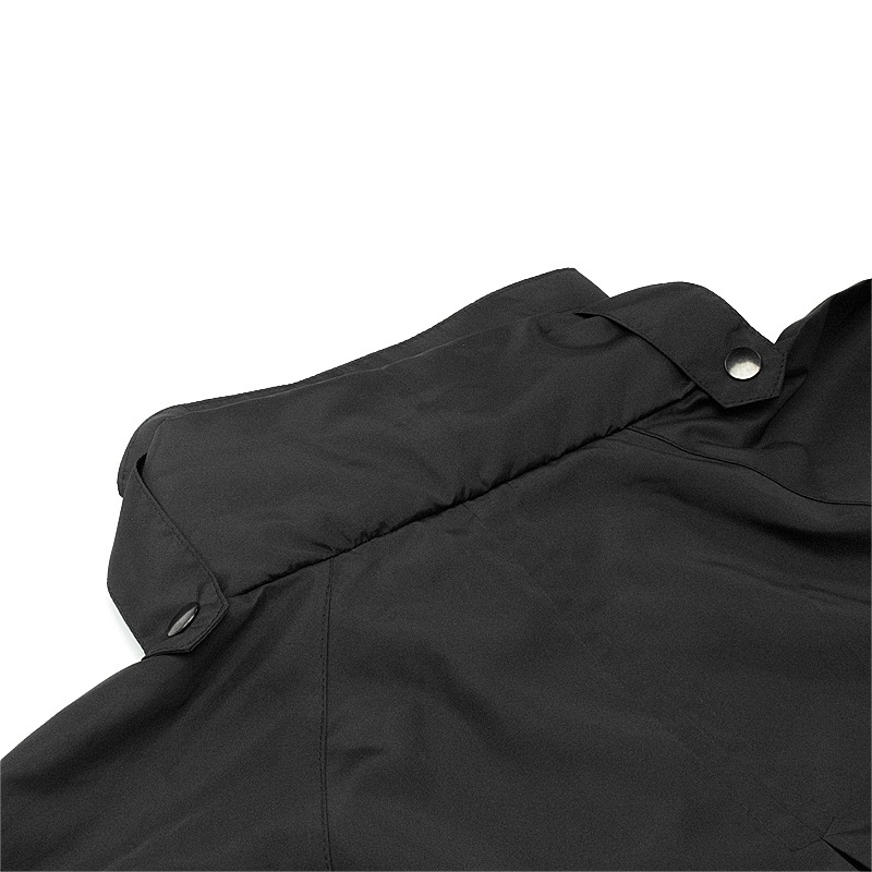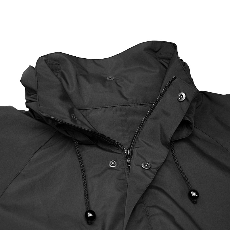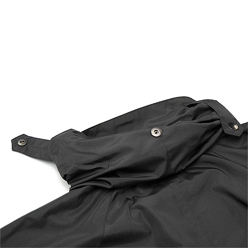 生地本来の通気性があり、ムレずに爽やかな着心地です。軽くてサッと払えば雨が水滴となってこぼれ落ち、濡れずに快適にご使用できます。裾には放電糸を使用し、静電気による纏わりつきを軽減します。収納式のフードなのでビジネスシーンにも、普段着としてもご使用いただけます。左右のポケットはファスナー開閉で、袖口にサイズ調整のボタンをつけたりと、細部にこだわりました。ラグラン袖仕様の為、動きやすく、体型に合わせてフィットします。僅か420gと軽量で、小さくたたんで旅行や通勤にもバッグに入れておけば安心です。専用ポーチでコンパクトに持ち運べます。耐久撥水加工『dewelry®』が施されているため、洗濯への耐久性に優れています。