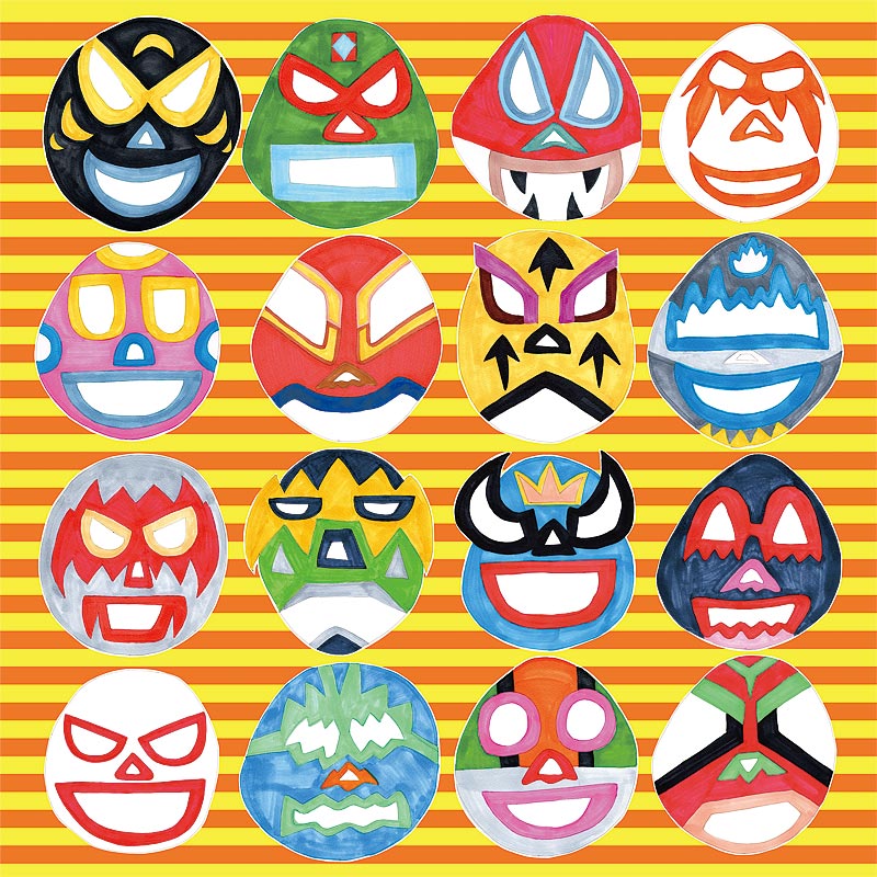 ながれデザインコンペ2022優秀賞受賞作品です。顔を包むプロレスラーマスク柄の風呂敷です。どことなくユーモラスなルチャドール(プロレスラー)のマスクが縁日のお面売り場のように並んでいます。