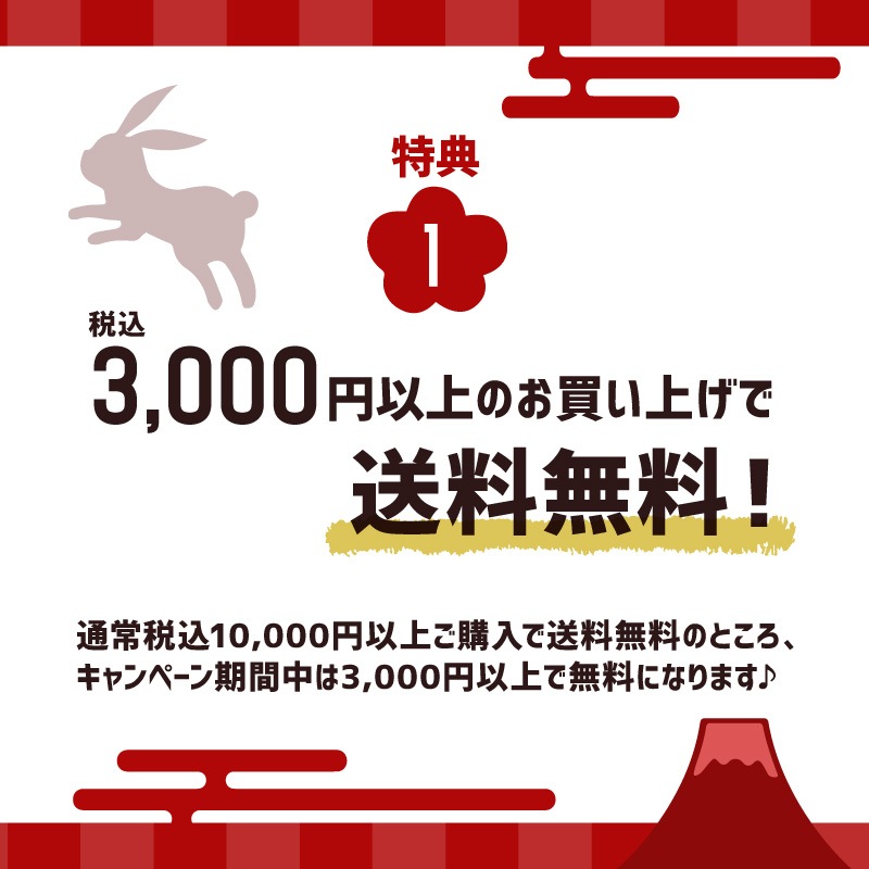 - ご注文頂いたお客様と受け取るお客様の住所が異なる場合、原則としてお届け先の住所にお年賀風呂敷「卯」を発送致します。配送先を指定される場合は、別途備考にご記入ください。