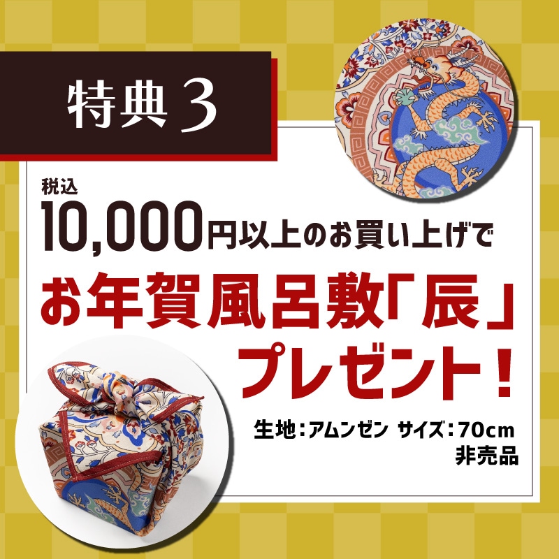 ご注文頂いたお客様と受け取るお客様の住所が異なる場合、原則としてお届け先の住所にお年賀風呂敷「辰」を発送致します。配送先を指定される場合は、別途備考にご記入ください。